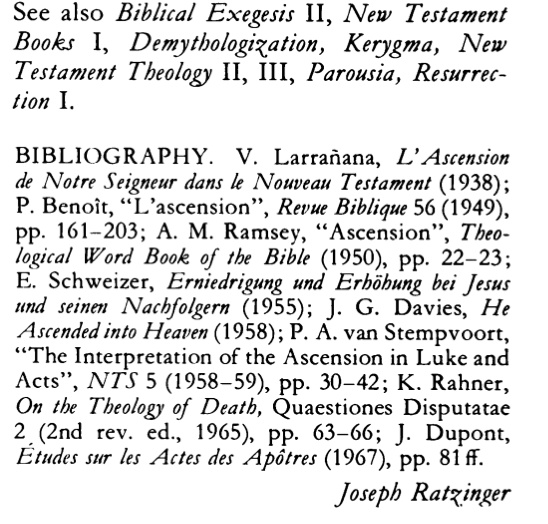 As an afterthought, Ratzinger’s bibliography for this article entry was not terribly impressive, and I leave it here: